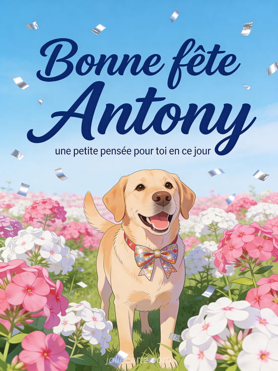Bonne fĂȘte Antony chat · Bonne fĂȘte Antony garcon · Bonne fĂȘte Antony fete a souhaiter · Bonne fĂȘte Antony chien · Bonne fĂȘte Antony fleurs