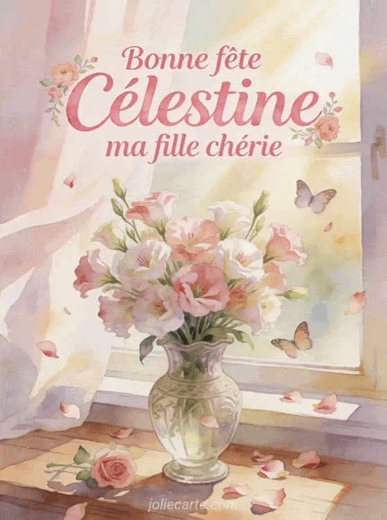 Bonne fête Célestine sainte · Bonne fête Célestine fleurs · Bonne fête Célestine fille · Bonne fête Célestine chat · Bonne fête Célestine gif anime