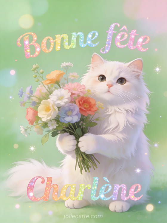 Golden retriever portant une couronne de pensées dans une prairie avec des oeufs de Pâques et fleurs Joyeuses Pâques Falaise côtière automnale surplombant l'océan turquoise avec cygnes formant un coeur, lampions de fête et couronne de fleurs au coucher du soleil Joyeux anniversaire ! Le plus beau cadea Adorable chaton blanc aux grands yeux verts entouré de petits cœurs roses et dorés scintillants avec traces de bisous et le texte Un bisou volé Un bisou volé pour te faire sourire Magnifique chat roux aux yeux dorés couché à côté d'un cadeau doré avec noeud rouge, lumière chaude et bokeh doré Joyeux anniversaire Pont en bois arqué sur un ruisseau calme au parc Keukenhof, narcisses blancs et tulipes roses, brins de muguet reflétés dans l'eau, oiseau rouge-gorge sur la rambarde, serre victorienne, lumière matinale douce, style illustration délicate Bonne fête du muguet ! Terrasse ensoleillée avec plantes vertes, gâteau d'anniversaire élégant, verres de limonade et guirlandes de fanions colorés en lumière estivale Joyeux anniversaire ! La vie est belle q Cigogne blanche perchée sur un rocher devant la baie d'Ha Long au crépuscule avec pitons karstiques et jonques traditionnelles et le texte Bon lundi Bon lundi Texte Joyeux anniversaire en lettres bleu roi satinées avec enveloppe rouge ouverte, bouquet de roses, étoiles dorées et confettis sur fond texturé Joyeux anniversaire