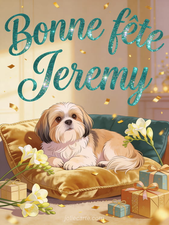 Bonne fĂȘte Jeremy chien · Bonne fĂȘte Jeremy image · Bonne fĂȘte Jeremy saint · Bonne fĂȘte Jeremy fleurs · Bonne fĂȘte Jeremy carte