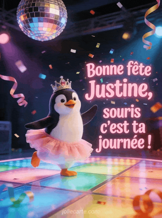 Télécharger le GIF animé bonne fête Justine, souris c'est ta journée !