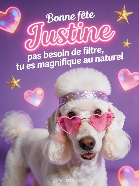Télécharger l'image bonne fête Justine, pas besoin de filtre, tu es magnifique au naturel