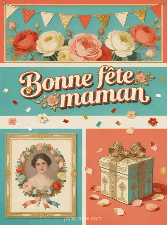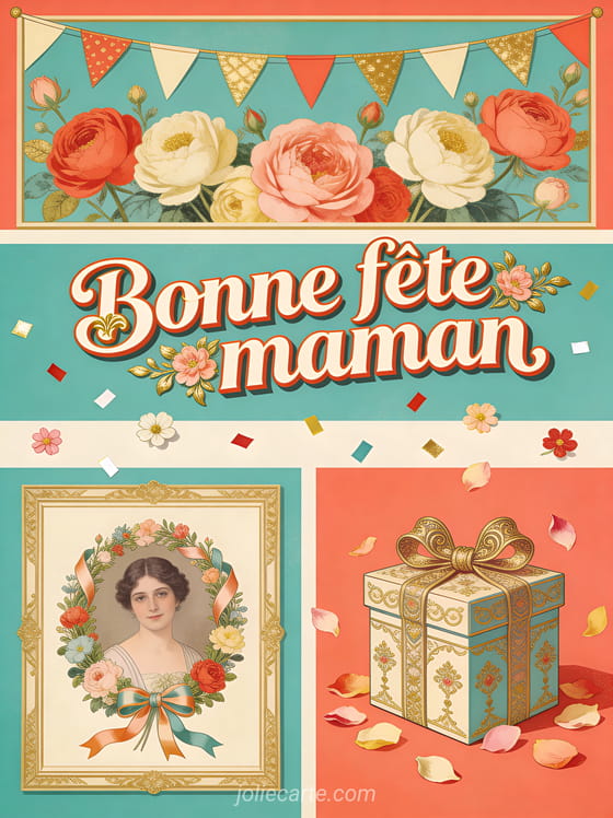 Cette affiche fĂȘte des mĂšres au style vintage et festif est parfaite pour cĂ©lĂ©brer votre maman avec une touche d'originalitĂ©. Explorez aussi un bouquet de fleurs fĂȘte des mĂšres, un bouquet de fĂȘte des mĂšres ou une carte bonne fĂȘte des mĂšres maman.