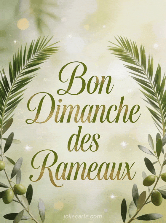 Célébrez le dimanche des Rameaux avec cette carte ornée de branches d'olivier et de palmier. Une image empreinte de spiritualité pour partager vos voeux de paix en cette occasion spéciale. Parfaite pour un dimanche béni en famille.