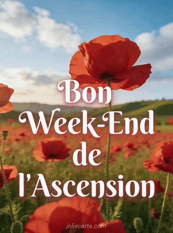 Partagez cette image « Bon Week-End de l'Ascension » avec un magnifique champ de coquelicots. Découvrez aussi une image céleste ou une vue de montagne.