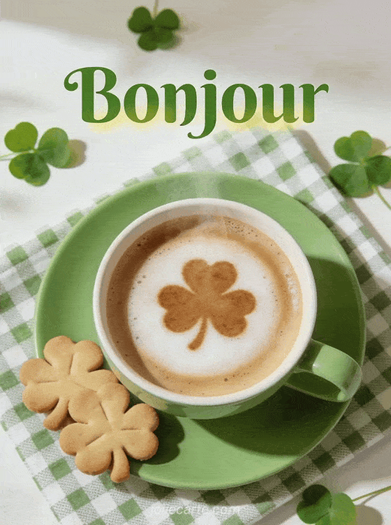 Bonjour un café et des trèfles pour un bonjour spécial Saint-Patrick