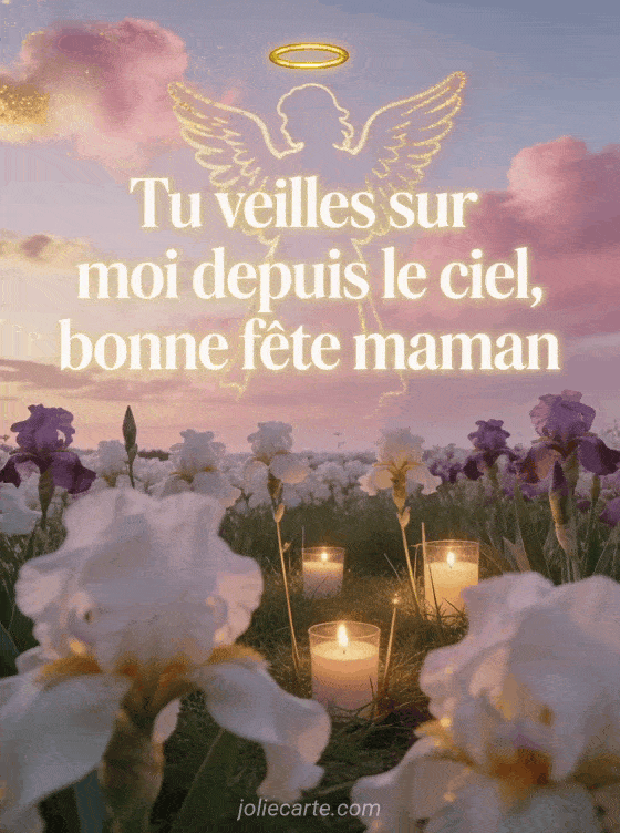Tu veilles sur moi depuis le ciel, bonne fĂȘte maman un ciel de lumiĂšre et des iris pour une maman au paradis