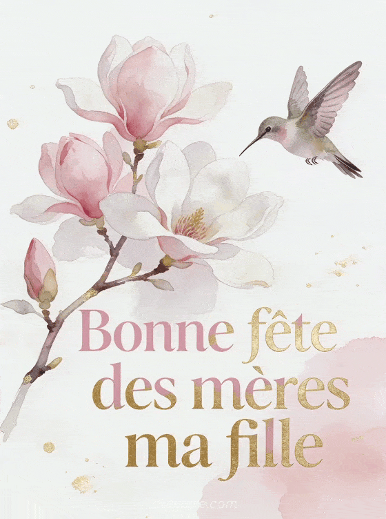 Souhaitez bonne fĂȘte des mĂšres Ă votre fille avec cette aquarelle de magnolia et colibri. DĂ©couvrez aussi une carte fĂȘte des mĂšres maman dĂ©cĂ©dĂ©e, une carte fĂȘte des mĂšres belle-fille ou un texte d'amour fĂȘte des mĂšres.