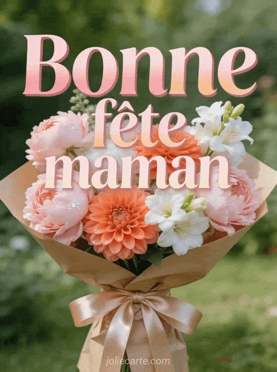 Partagez ce magnifique bouquet de pivoines, dahlias et freesias pour souhaiter une bonne fĂȘte des mĂšres. DĂ©couvrez aussi une carte gratuite maman, une carte bonne fĂȘte, ou un modĂšle fĂȘte des mĂšres.