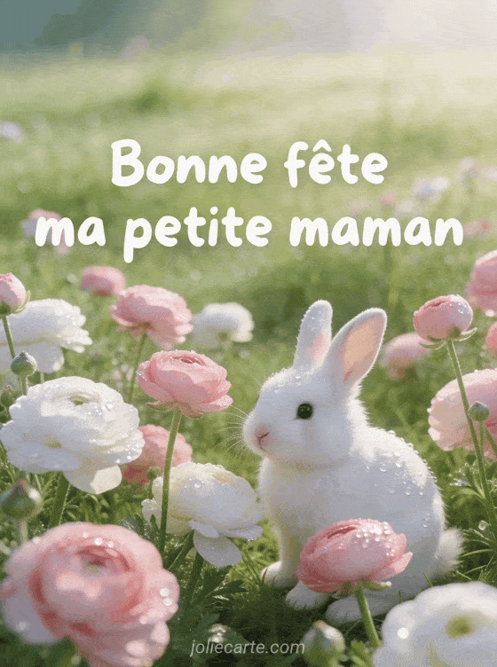Bonne fĂȘte ma petite maman un lapin dans les renoncules pour une maman pleine de tendresse