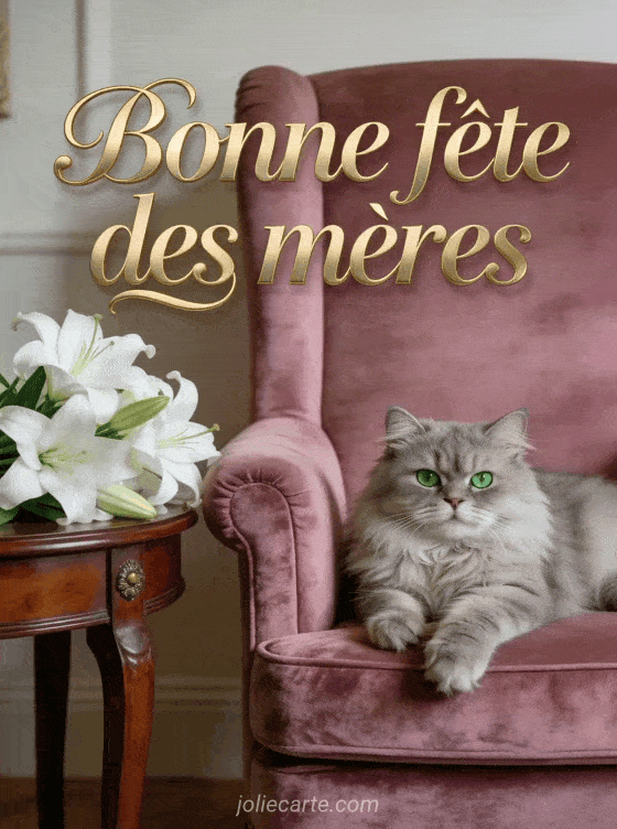 Envoyez cette carte bonne fĂȘte des mĂšres avec un chat persan et des lys blancs dans une ambiance cosy. DĂ©couvrez aussi une carte fĂȘte des mĂšres magnolias, un message fĂȘte des mĂšres ou un texte fĂȘte des mĂšres.
