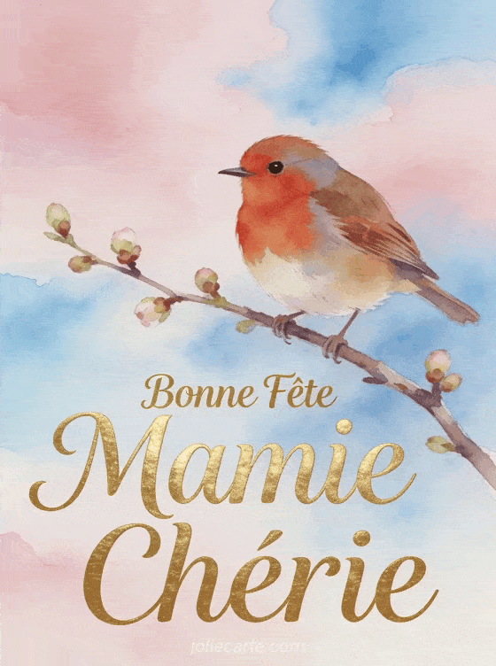Partagez cette tendre image « Bonne FĂȘte Mamie ChĂ©rie » avec un rouge-gorge sur branche printaniĂšre pour toucher le cĆur de mamie. Explorez aussi une fĂȘte florale, une attention enchantĂ©e ou une cĂ©lĂ©bration romantique.
