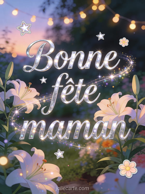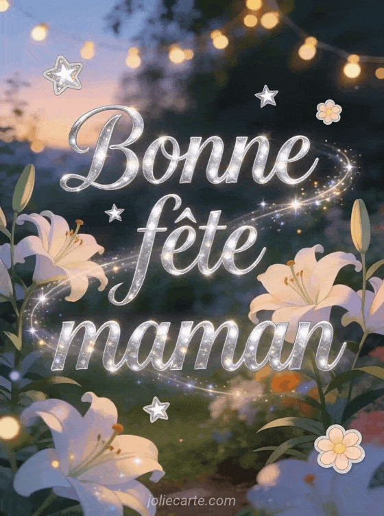 Surprenez votre maman avec une carte fĂȘte des mĂšres animĂ©e qui scintille et illumine son Ă©cran d'un message chaleureux. Voyez aussi notre message pour souhaiter bonne fĂȘte des mĂšres, notre carte de vĆux fĂȘte des mĂšres ou un message pour la fĂȘte des mĂšres.