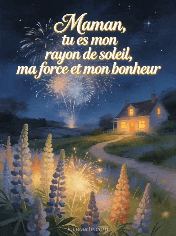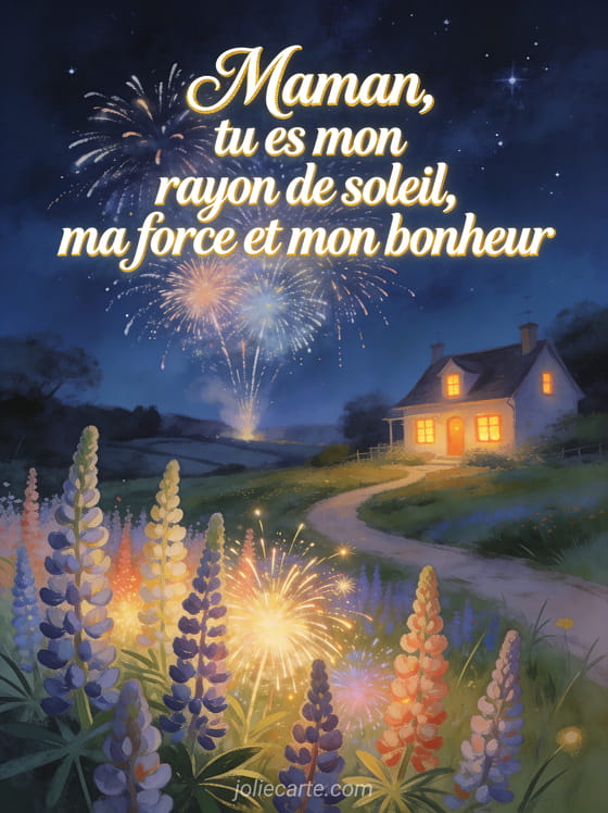 Maman, tu es mon rayon de soleil, ma force et mon bonheur une carte avec un beau texte pour la fĂȘte des mĂšres