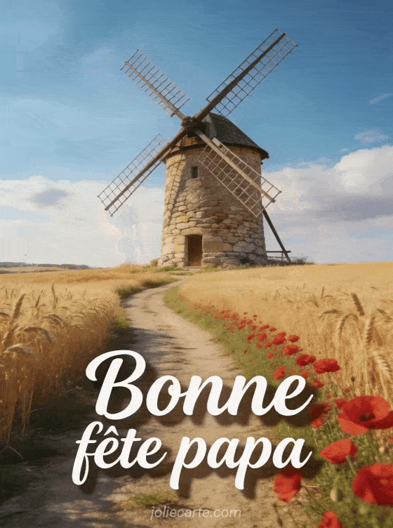 Envoyez cette carte champĂȘtre au moulin Ă vent pour souhaiter une belle fĂȘte Ă votre papa. Variez les styles avec une carte d'aventurier, une carte de vignoble ou un coin lecture pour papa.