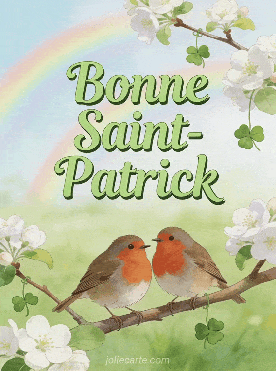 Envoyez cette carte poétique avec ses rouge-gorges et ses trÚfles pour la Saint-Patrick. Découvrez aussi une carte pub irlandais, une carte harpe celtique ou une carte lapin amusant.