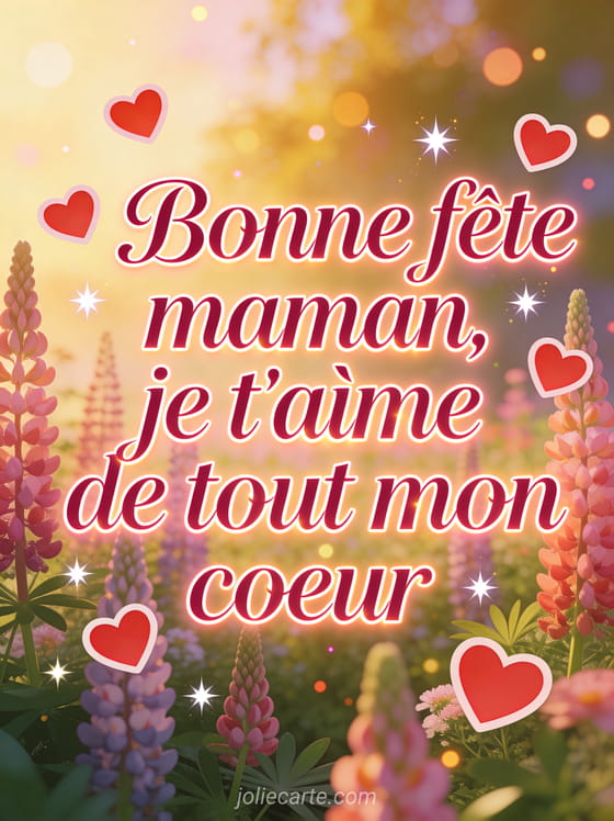Bonne fête maman, je t'aime de tout mon coeur une carte pleine d'amour pour la fête des mères