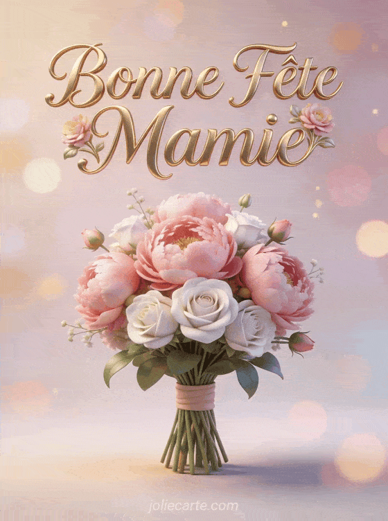 Offrez cette image « Bonne FĂȘte Mamie » ornĂ©e de pivoines et de roses pour cĂ©lĂ©brer votre grand-mĂšre adorĂ©e. Pour varier les attentions, dĂ©couvrez aussi un bouquet fleuri, une carte avec chat mignon ou une fĂȘte des mamies originale.
