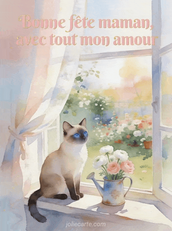 Envoyez ce texte bonne fĂȘte maman avec un chat siamois et des renoncules Ă la fenĂȘtre. DĂ©couvrez aussi une carte maman dĂ©cĂ©dĂ©e, un petit mot doux fĂȘte des mĂšres ou une boĂźte Ă mots doux fĂȘte des mĂšres.