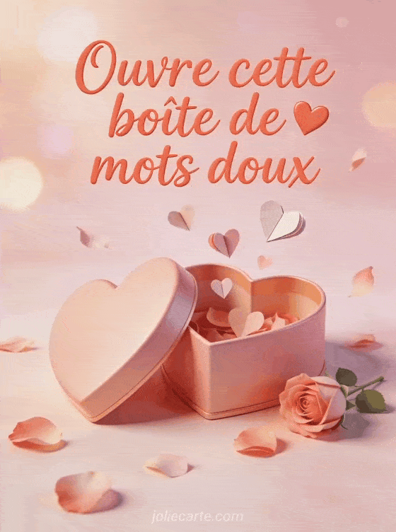 Partagez cette carte « Ouvre cette boĂźte de mots doux » avec des cĆurs qui s'envolent pour une fĂȘte des mĂšres pleine de tendresse. Voir aussi un texte amour maman, des mots doux en pot, ou un dimanche de fĂȘte.