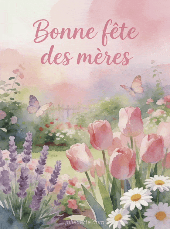 Partagez cette image fleurie pour souhaiter une tendre fĂȘte des mĂšres avec tulipes, lavande et marguerites. ComplĂ©tez avec une image fĂȘte des mĂšres, une carte de fĂȘte, ou un message fleuri.