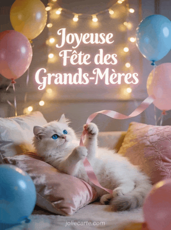 Joyeuse FĂȘte des Grands-MĂšres un chaton blanc joueur pour cĂ©lĂ©brer mamie