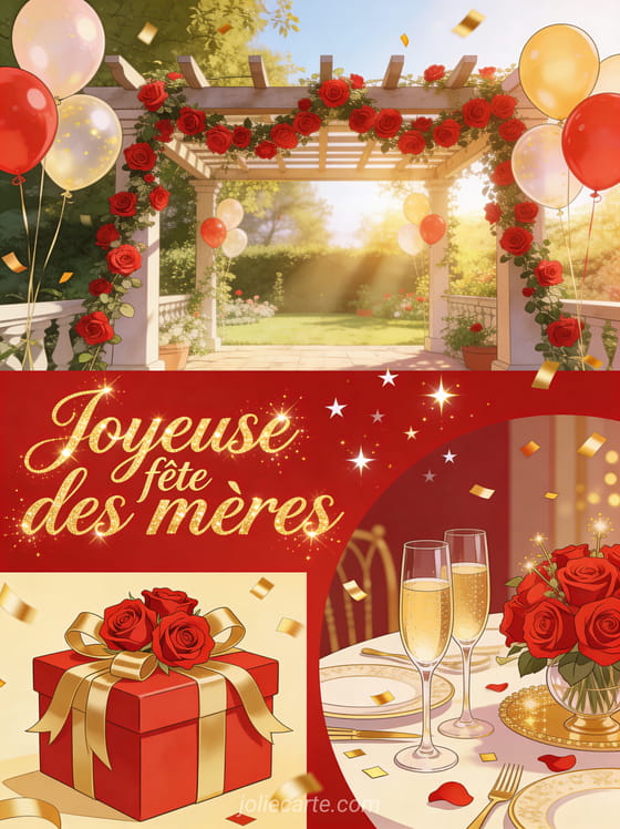 Une carte festive et lumineuse pour souhaiter une joyeuse fĂȘte des mĂšres Ă votre maman. Pour d'autres idĂ©es, dĂ©couvrez un poĂšme d'amour pour la fĂȘte des mĂšres, un poĂšme pour maman pour la fĂȘte des mĂšres ou une carte publication Facebook fĂȘte des mĂšres.