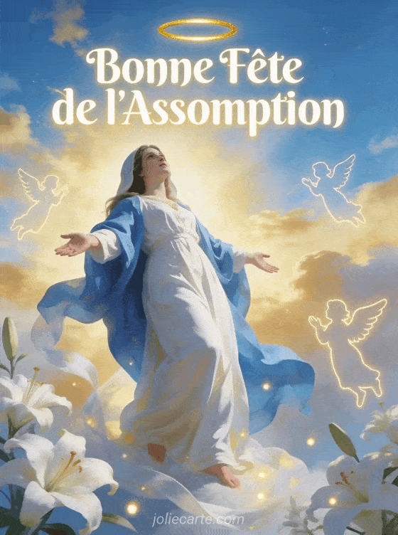 Bonne Fête de l'Assomption la Vierge s'élève dans la lumière céleste