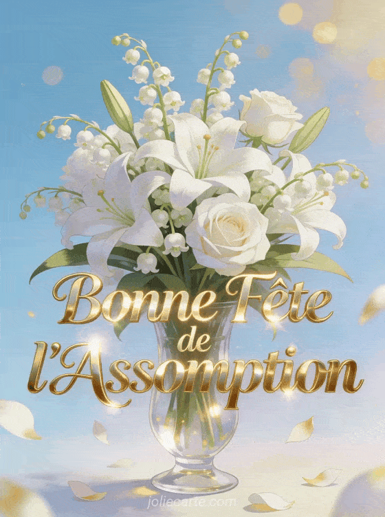 Partagez cette image « La FĂȘte de l'Assomption » avec son bouquet de lys et muguet pour le 15 aoĂ»t. DĂ©couvrez aussi des images Assomption, une carte procession Assomption ou une image de l'Assomption.