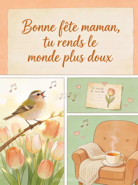 Bonne fête maman, tu rends le monde plus doux un petit mot du cœur pour souhaiter la fête des mères