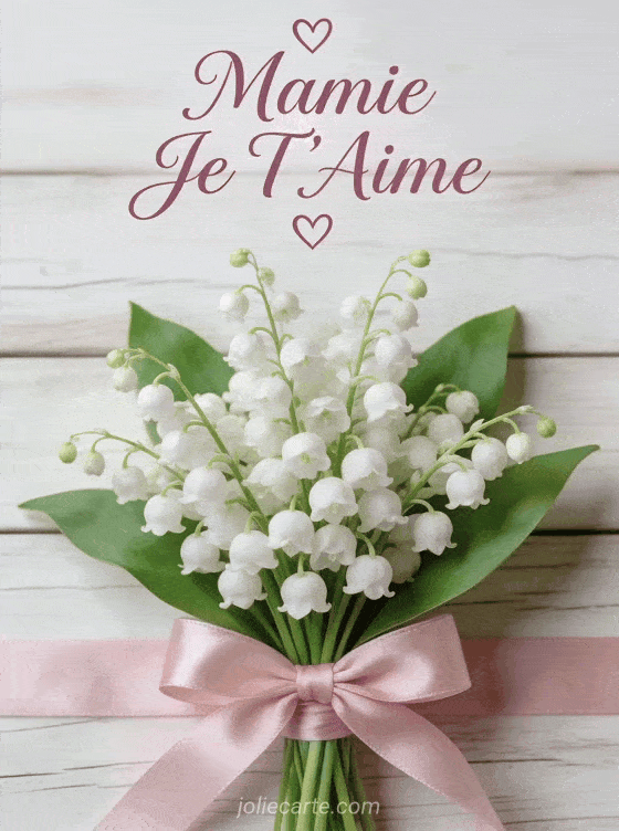 Partagez cette pure image « Mamie Je T'Aime » avec son muguet dĂ©licat pour exprimer tout votre amour. DĂ©couvrez aussi une fĂȘte adorable, une attention tropicale ou une cĂ©lĂ©bration romantique.