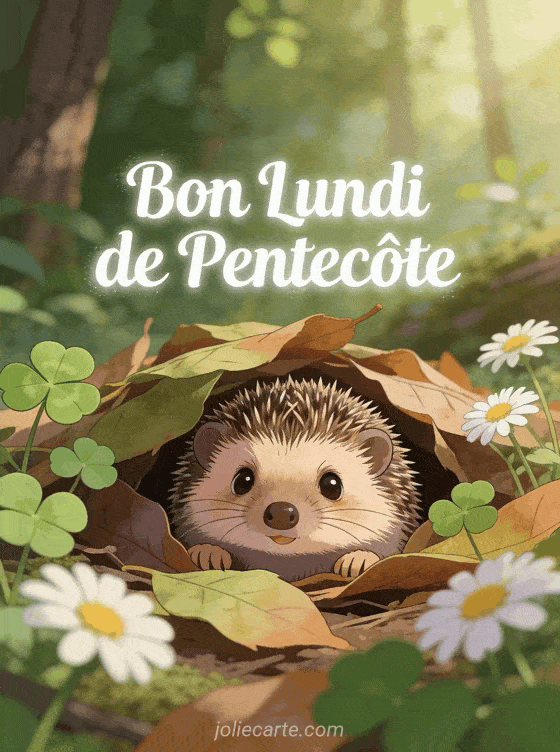Partagez cette image pour « Souhaiter un Bon Lundi de Pentecôte » avec son hérisson. Découvrez aussi un brunch ensoleillé, un lapereau ou des pivoines.