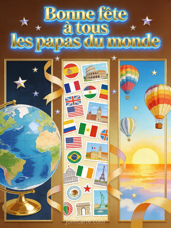 Tous les papa monde bonne fete des peres porte un souhait large, généreux et universel. Cette carte peut rejoindre un message pour l'homme qu'on aime, compléter un mot tendre pour mon chéri et rester fidÚle à une carte dédiée à papa.