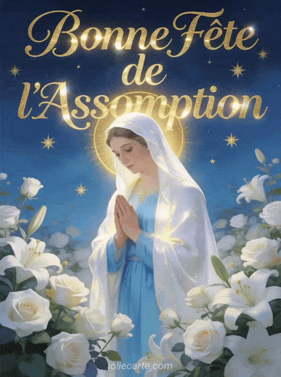Partagez cette image « Vierge de l'Assomption » avec Marie en priĂšre entourĂ©e de roses pour le 15 aoĂ»t. DĂ©couvrez aussi une carte fĂȘte Assomption, une carte vĆux Assomption ou une image bonne fĂȘte Assomption.