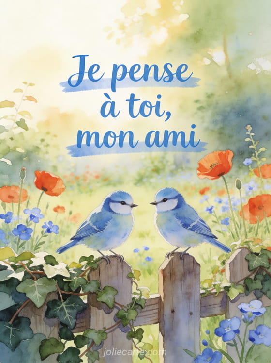 Offrez cette image « Je pense Ă toi, mon ami » pour montrer votre amitiĂ© fidĂšle. DĂ©couvrez aussi une pensĂ©e du soir, un message tendre ou une pensĂ©e du cĆur.