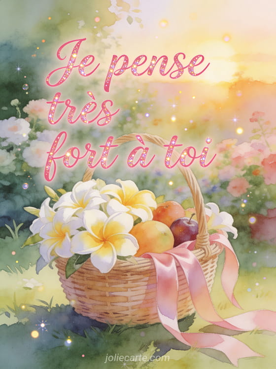 Transmettez toute la force de votre amitié avec cette image je pense très fort à toi. Pour compléter cette attention, découvrez aussi une carte je pense fort à toi, une pensée fleurie je pense à toi ou un message pour un ami auquel je pense.