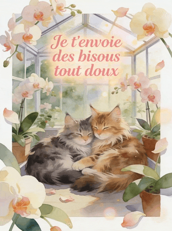 Un amour chaton gif animé chat bisous permet de transmettre une affection romantique avec beaucoup de douceur, entre une carte de bisous d'amour, un bisou d'amour trÚs romantique et un gif gratuit de bisous d'amour, pour partager un message tendre, complice et délicatement amoureux.