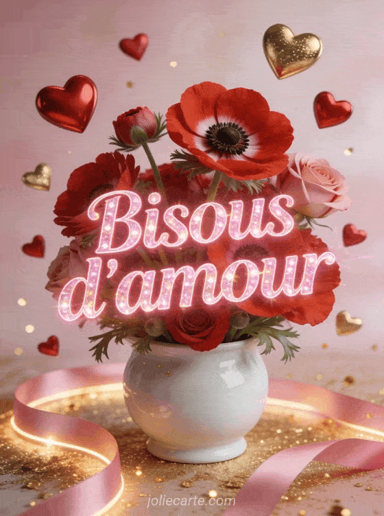Envoyez des bisous d'amour animés avec cette carte gratuite. Un message vivant et romantique pour apporter un peu de magie dans la vie de votre amour. Découvrez aussi des bisous humour, une citation bisous ou des bisous romantiques.