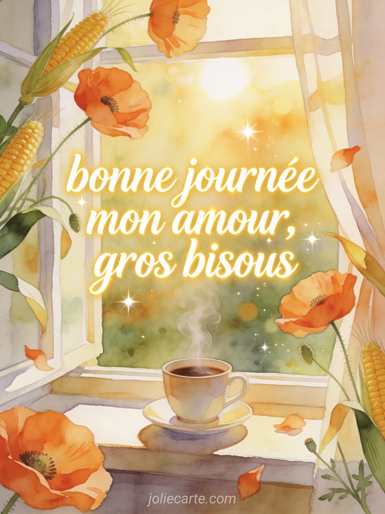 bonne journée mon amour, gros bisous une attention matinale pour souhaiter une belle journee avec des bisous