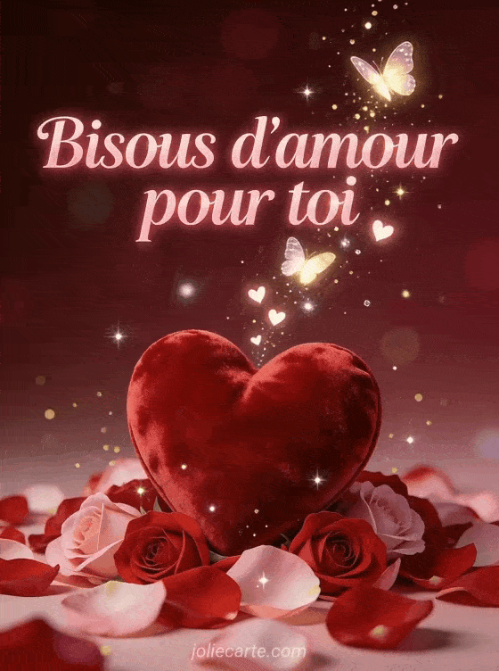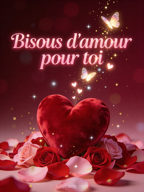 Envoyez des bisous d'amour Ă la personne qui fait battre votre cĆur avec cette carte gratuite. Un message romantique pour lui dire que tous vos bisous lui sont destinĂ©s. DĂ©couvrez aussi des bisous de tendresse, des bisous illustrĂ©s ou des bisous amoureux.