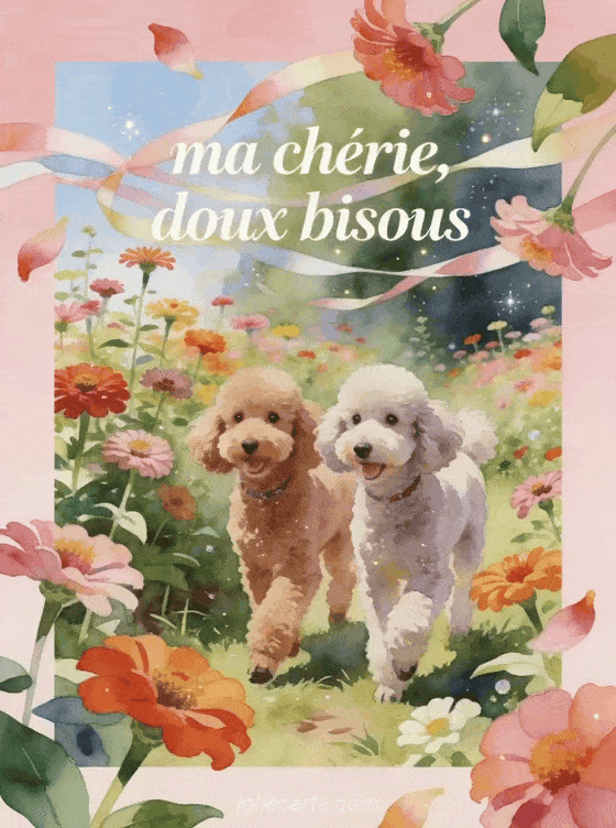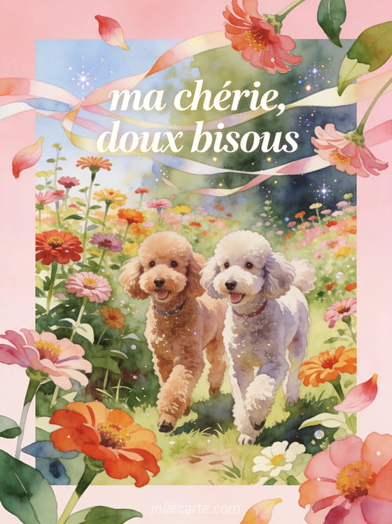 Dire bisous ma cherie devient plus simple avec cette carte gratuite au ton affectueux et delicat. Elle se complete joliment avec un coeur anime plein de bisous tendres, une image gros bisous mon cheri et un gif de bisou d'amour romantique pour envoyer un message chaleureux a la personne aimee.