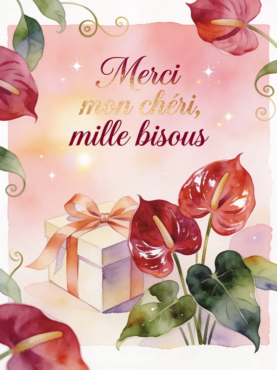Cette carte bisous merci mon cheri aide a remercier avec tendresse, gratitude et amour. Elle s'accorde avec un message kiss love tres romantique, prolonge une declaration intime pour deux et rejoint des bisous tendres adresses a son cheri pour exprimer vos sentiments avec justesse.