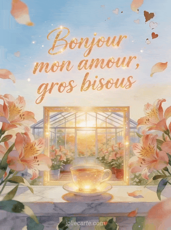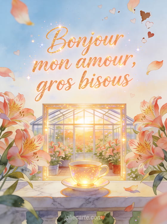 Ce mot-clé est parfait pour un message du matin rempli d'affection, en associant un gif de bisous passionnés, une attention d'amour pleine de tendresse et un mot doux pour ta chérie afin d'ouvrir la journée sur une note chaleureuse.