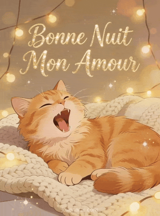 Envoyez ce SMS « Bonne Nuit Mon Amour » avec un chat roux adorable. Il bâille sous les guirlandes lumineuses pour te souhaiter bonne nuit. Découvrez aussi un poème, une image à distance ou une nuit tendre.