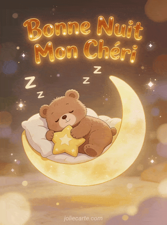 Envoyez « Bonne Nuit Mon Chéri » avec cet ourson adorable. Blotti sur un lit de lune avec son coussin étoile, il t'invite au sommeil. Découvrez aussi un poÚme, un message doux ou une citation.