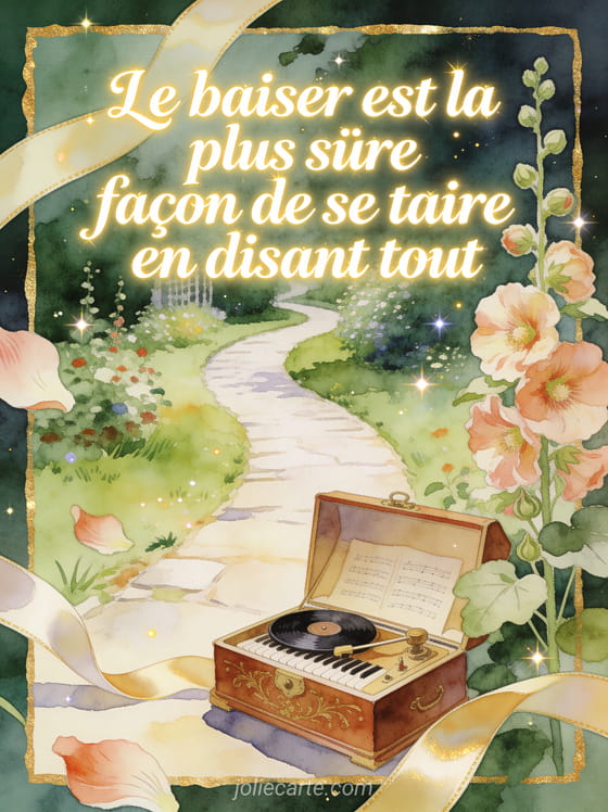 Pour choisir une citation amour bisous, cette carte gratuite apporte une formule memorable et pleine de delicatesse. Elle s'accorde avec un gif de bisous d'amour, un poeme sur les bisous d'amour et des bisous d'amour par sms pour partager un message romantique qui reste en memoire.