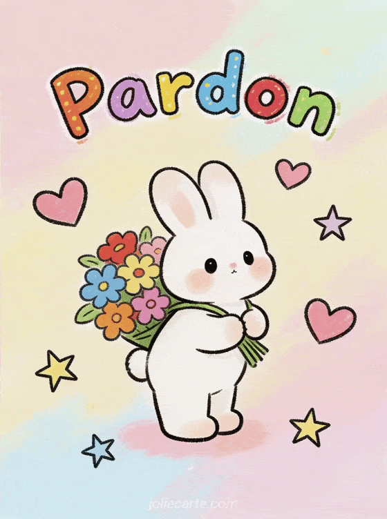 Envoyez ce dessin pardon adorable pour exprimer vos regrets avec douceur et légÚreté. Découvrez aussi une carte sur comment demander pardon à son amour, une lettre pour demander pardon à sa fille ou un texte pour demander pardon à quelqu'un.