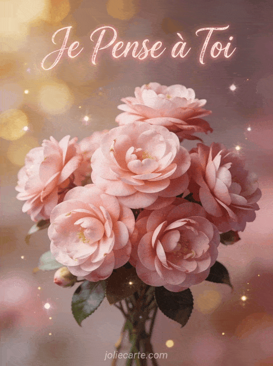 Partagez cette image « Je Pense à Toi » romantique avec de délicats camélias. Découvrez aussi un sms magnifique, un sms matinal ou une pensée d'amour.