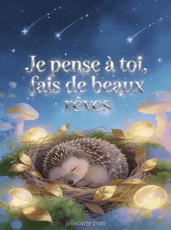 Envoyez cette image « Je pense Ă toi, fais de beaux rĂȘves » pour accompagner le sommeil de l'ĂȘtre cher. Variez avec un mot d'amour, une citation tendre ou un dessin poĂ©tique.