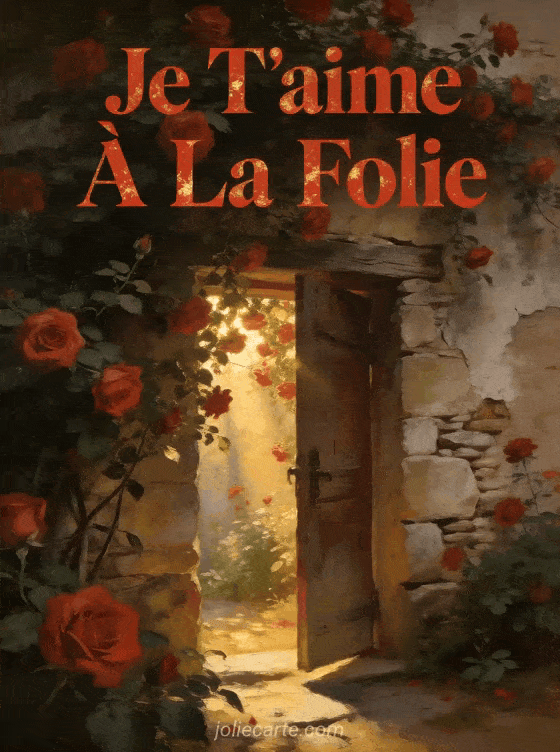 Déclarez un amour passionné avec cette image « Je T'aime à La Folie » dans un jardin secret de roses grimpantes. Essayez aussi un ciel étoilé, un poÚme romantique ou un chiot tendre.